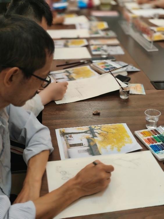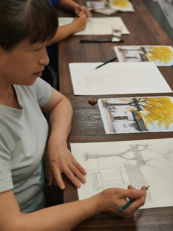 在绘画过程中,老师和志愿者们耐心仔细地帮助居民朋友们解决问题,鼓励社区老人们大胆创作和发挥自己的想象力。通过老师的指导和志愿者们的帮助下,社区老人们的画面逐渐完善丰富起来,富有生气的金秋·幸福小院也逐一显现出来。