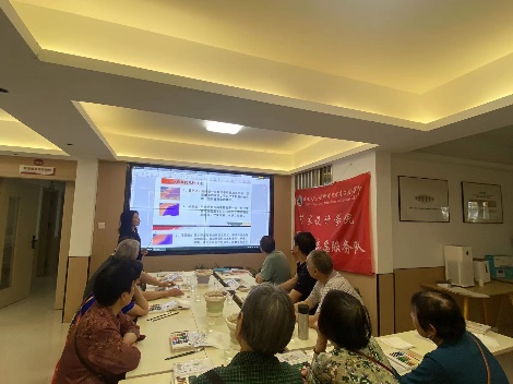 活动进行之前,社区人员和助教及学生志愿者们提前就准备好了矿泉水,有序摆好颜料和画纸以及提前打好颜料水桶,摆放好桌椅方便社区老人们的绘画。社区的老人们看到社区人员,助教以及志愿者做的这些准备,连夸好用心。活动进行时,主讲老师通过ppt讲解了水彩画的起源和水彩画的绘画手法,老人们听的十分认真,还将绘画手法写在了纸上。老人们开始尝试水彩画不同的绘画手法,助教老师和志愿者们逐一耐心教老人们去掌握,有的老人练习完后伸出大拇指直呼:“这水彩画可不简单,画完好有成就感!”