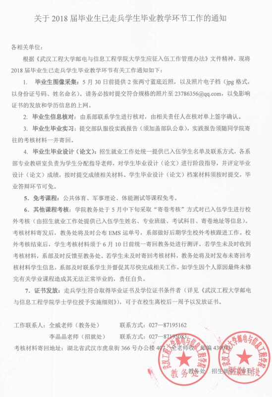 关于2018届毕业生已走兵学生毕业教学环节工作的通知