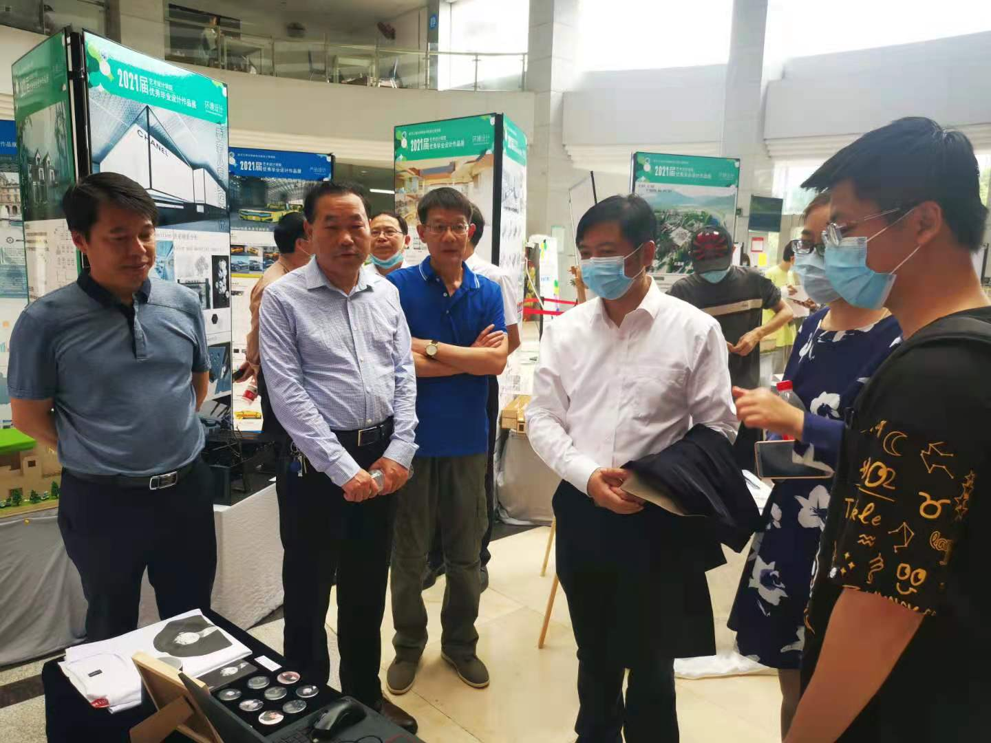 5月8号上午9:30,yL23411永利2021届毕业设计优秀作品展于武汉工程大学流芳校区图书馆一楼顺利开幕。武汉工程大学党委书记程幼金,党委副书记李志旭,副校长、董事长方文海,校党政办公室主任、学院董事马小龙,校招标采购处处长何秉忠,永利23411集团院长韩高军,党委书记董光尚,副院长欧阳琼,教务部部长王仕仙,副部长杨依依,艺术设计院长宋奕勤,副院长杨婉以及各专业负责人出席该活动。