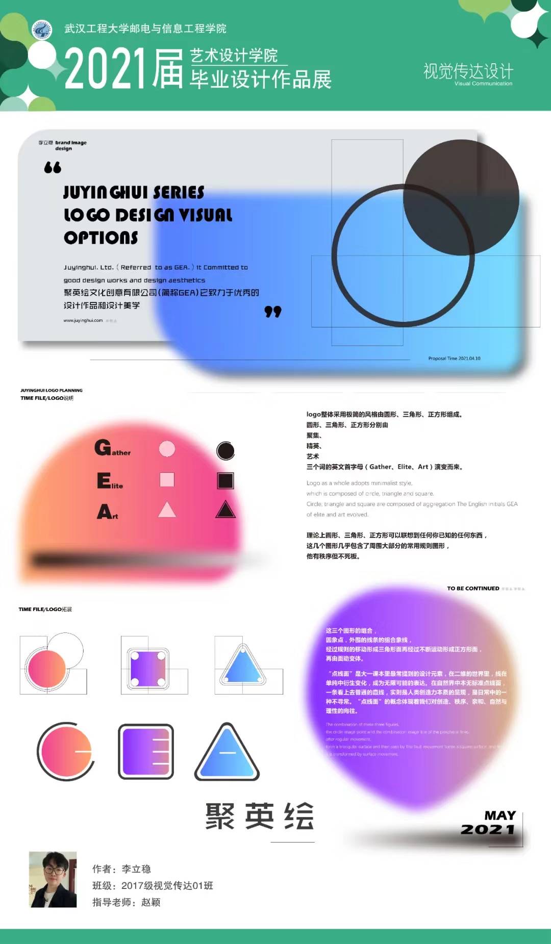 设计说明:logo整体由圆形三角形正方形组成。圆形由聚集的英文首字母G演变而来。正方形由精英的英文首字母E演变而来、三角形则由艺术英文首字母A演变而来。