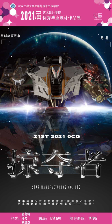 设计说明:《掠夺者》讲诉的是在资源短缺的星系“绝境”中,以星际制造有限公司和绝境反抗军为首的各个军队之间为了争夺当地资源的控制权而展开的一系列战争,并以此为故事背景设计制作了相关的游戏及游戏CG。