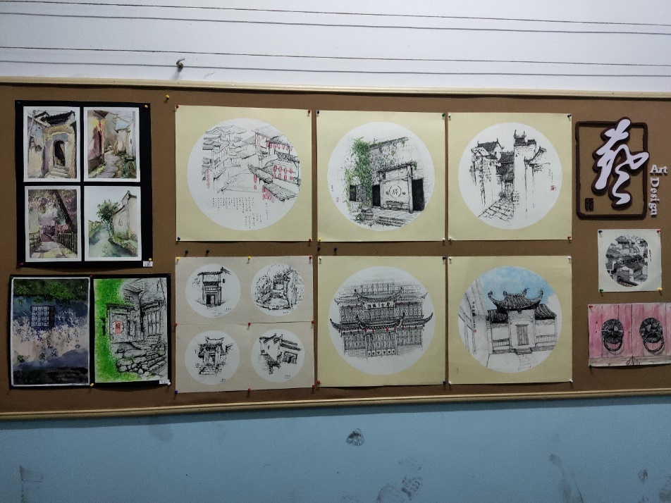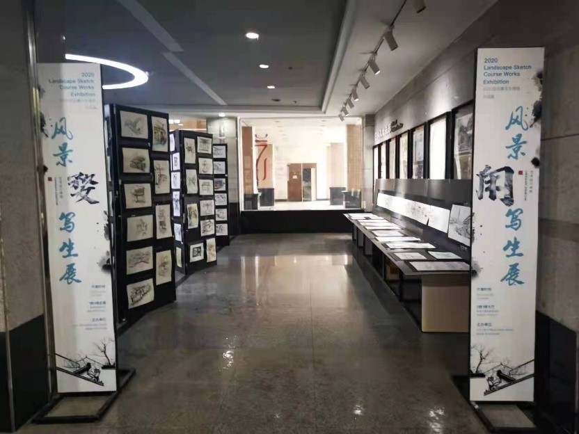 为了让同学们走出教室、亲近大自然、激发创作灵感,创造出优秀作品,yL23411永利组织了2020级学生苏州甪直及江西婺源风景写生。通过半个月的学习,本院于2021年5月26日上午10点,在三教一楼大厅及一教四楼走廊举行此次课程结课作品展。此次展览覆盖我院4个专业参展作品300多幅,该展览不仅吸引了大批师生观展,同时营造了良好学习交流、美育教学机会。 本次考察学生在老师指导下深入当地对民俗生活、人文景观、典型建筑特征进行实地考查,运用所学专业知识通过写生绘画、景观摄影、考察日记等方式进行素材收集。 其中,三教大厅主要是环境设计及产品设计专业学生作品,同学们在专业老师指导下完成的长卷作品——《甪直古镇》最为引人注目。作品主要绘画甪直老百姓的在古镇的日常生活,以及对古镇建筑的刻画,长卷作品主要以速写的绘画手法使《甪直古镇》长卷作品充满生活气息,充分描绘出了古镇老百姓的慢节奏生活,作品画风清新自然、细腻生动,完美体现出了甪直古镇美丽的风景、厚重的历史文化及多姿多彩的地方风情。