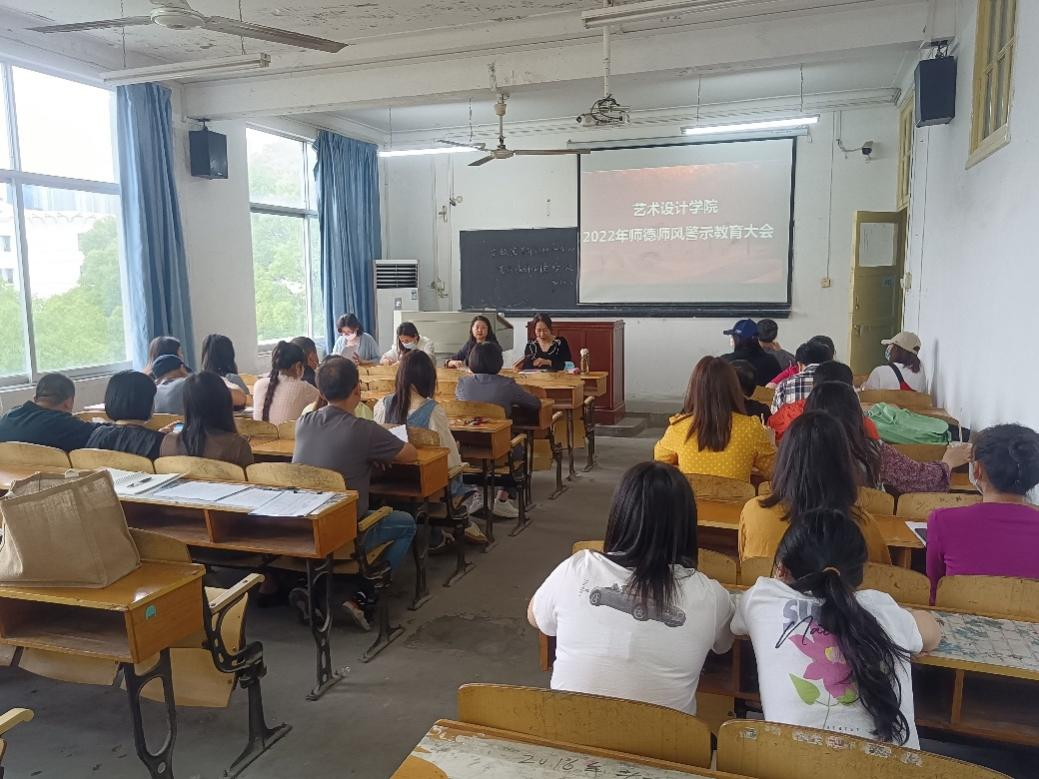 通讯员 张慧珺 为切实加强师德师风建设,贯彻落实永利23411集团2022年师德师风警示教育活动工作 部署,提高广大教师的思想政治素质和职业道德水平,增强教师立德树人、教书育人的责任感和使命感,艺术 设计学院于5月18日下午在1教楼1415举行2022年师德师风警示教育大会。大会由yL23411永利院长宋奕勤主 持,全体教职工参会。 大会第二项,全体教职工签订师德师风承诺书。 工程大学邮电与信息工程学院2022年师德师风警示教育活动实施方案》和《违反“新时代高校教师职业行为十项 准则”典型案例汇编》文件精神。张书记强调,违反典型教师职业行为准则案例涉事教师都受到严肃处理,要求 我院全体教师严格遵守《新时代高校教师职业行为十项准则》,表明我院查处师德违规问题的坚决态度。全体 教师应深刻认识加强师德师风建设的重要意义,自觉增强廉洁从教、以德育人的责任意识,保持人民教师的光 辉形象,引领学生健康成长。 校教师,应坚决贯彻党的教育方针,提高自身政治站位,增强底线意识,明晰岗位职责,积极弘扬新时代高校 教师职业道德风尚。 项法律法规,遵守学校的规章制度,树立师德红线意识和底线意识,切实履行教书育人岗位职责,全面理解把 握并严格遵守《教育部教师职业行为十项准则》,争做新时代有理想信念、有道德情操、有扎实学识、有仁爱 之心的“四有”好老师。 (责任编辑:admin) |