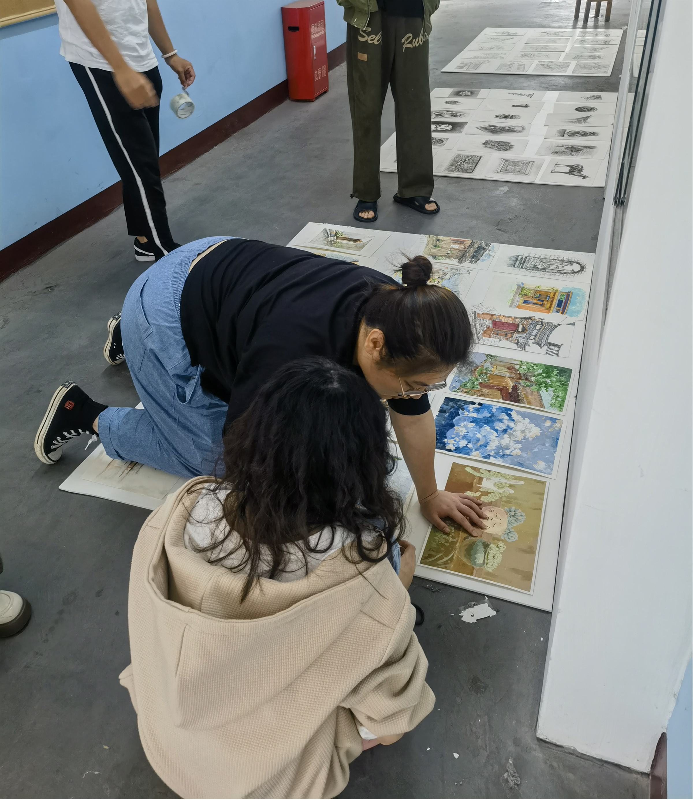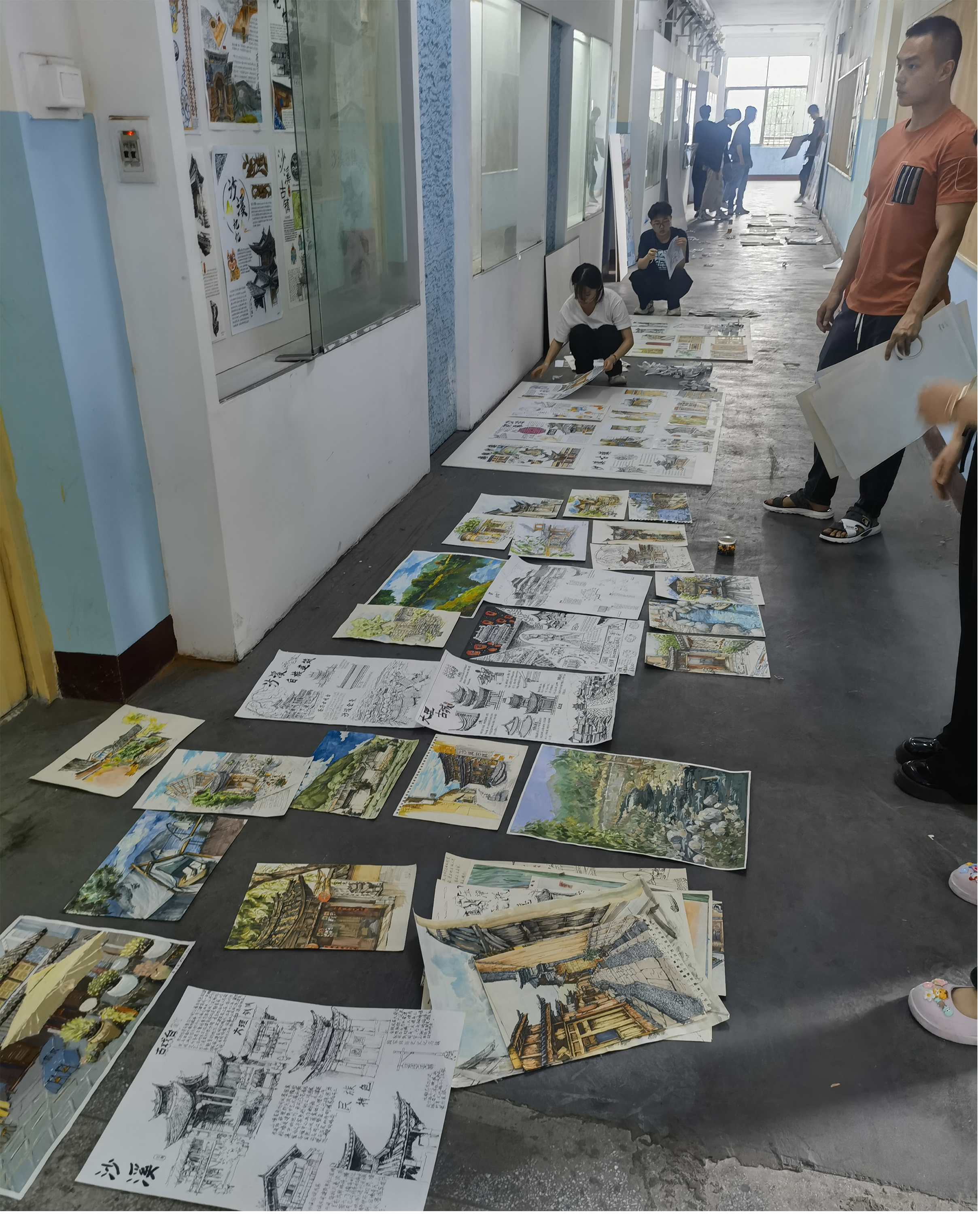 ![]() (“印象沙溪”风景写生作品展海报) 本次展览主题为“印象沙溪”,参展作品以沙溪古镇当地民风、民俗为创作素材,学生们通过对建筑风格、地域风貌、特色景观进行详细调研、走访、观察从而将采风过程中的民族元素结合各专业特点进行创作,同学们将祖国大好河山的山水之情,用笔墨色彩寄情于一幅幅作品中。 ![]() ![]() (教师指导学生布展现场) ![]() (“印象沙溪”风景写生课程作品展)
