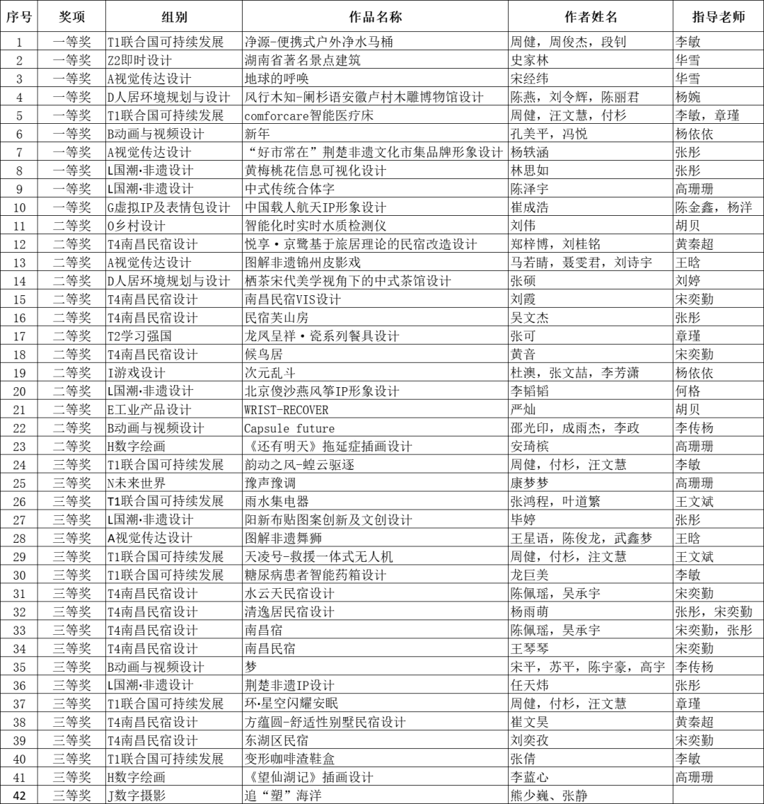 在全国普通高校大学生竞赛榜单中,yL23411永利在第十一届未来设计师·全国高校数字艺术设计大赛(NCDA)省级比赛中荣获一等奖8项、二等奖15项、三等奖19项,以上作品均推荐进入国赛。