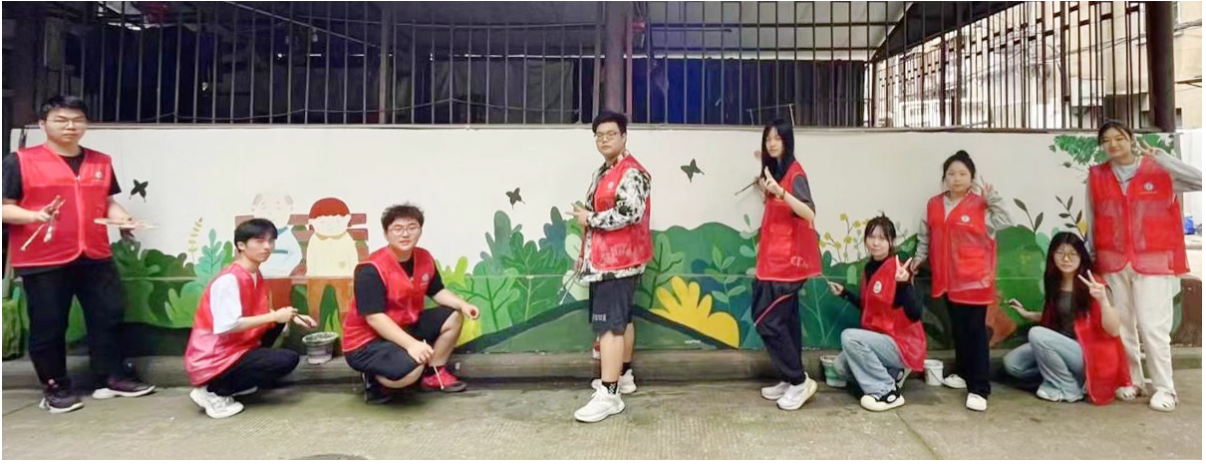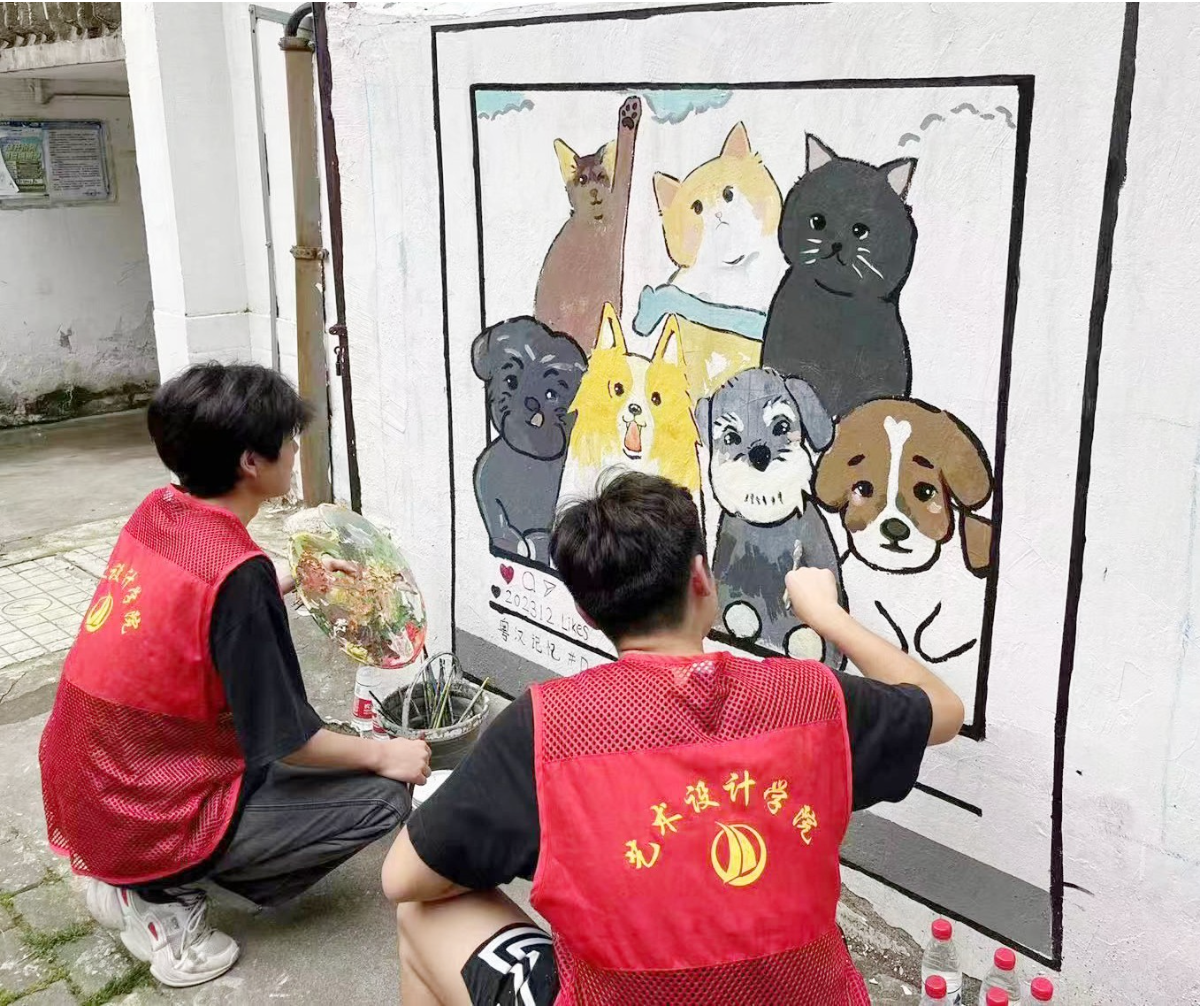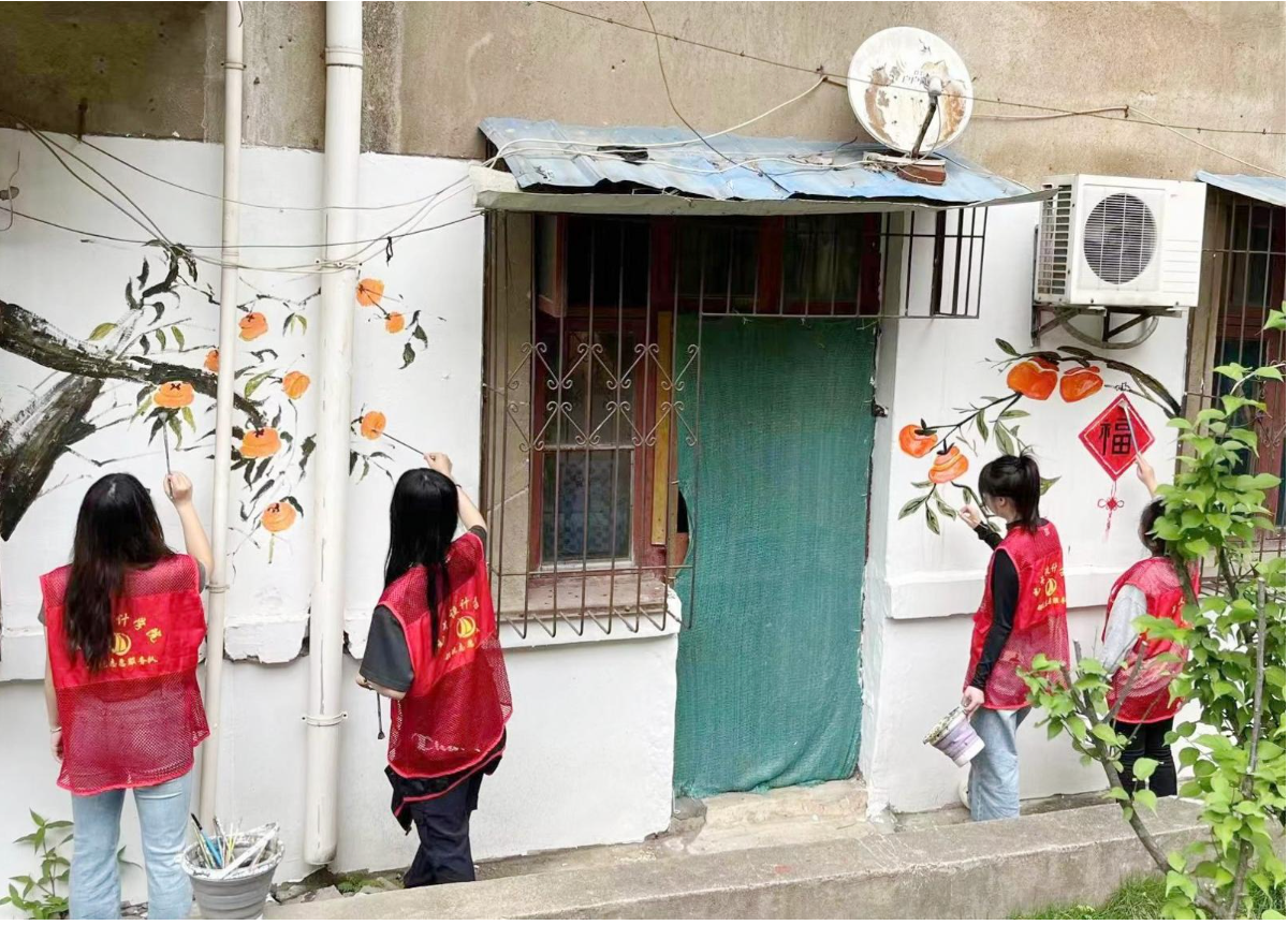 童年回忆、自然风光、家风文化……经过辛苦的绘制过程,不少斑驳的旧墙换上了新颜,变成了“颜值高”的主题墙绘。在墙绘的点缀下,公共环境焕然一新,充满了青春的气息。该校2023级数字媒体艺术01班宋知瑜同学说:“在前期沟通时,居民表示希望彩画墙能有更多美丽、活泼的元素,我们的设计结合此想法开展设计创作,完工后受到了居民们的一致好评。”
