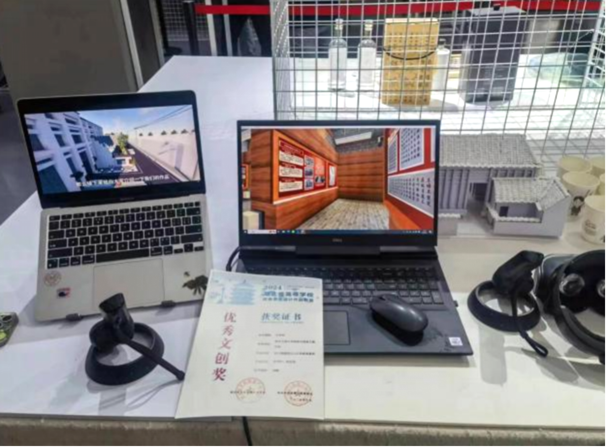 ![]() 漆炫菲《制瓷之艺》作品 来自环境设计专业史书宁、朱巨丹同学以红色主题为背景,将崇义镇爱国主义红色教育基地全面进行改造,通过VR互动体验的方式将在场观众沉浸式体验其中。以上每一件作品都展现了同学们对文化传承与创新的深刻理解。 ![]() ![]() 史书宁、朱巨丹《崇义镇爱国主义红色教育基地》作品