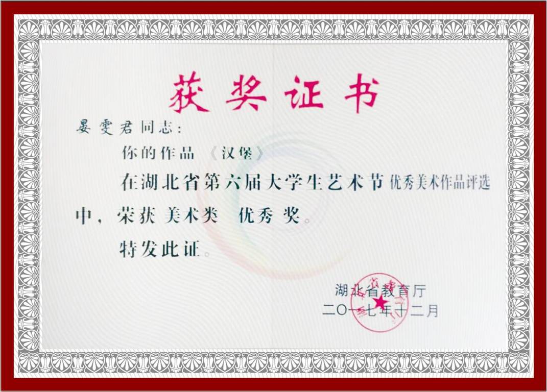 大学生艺术节获奖证书