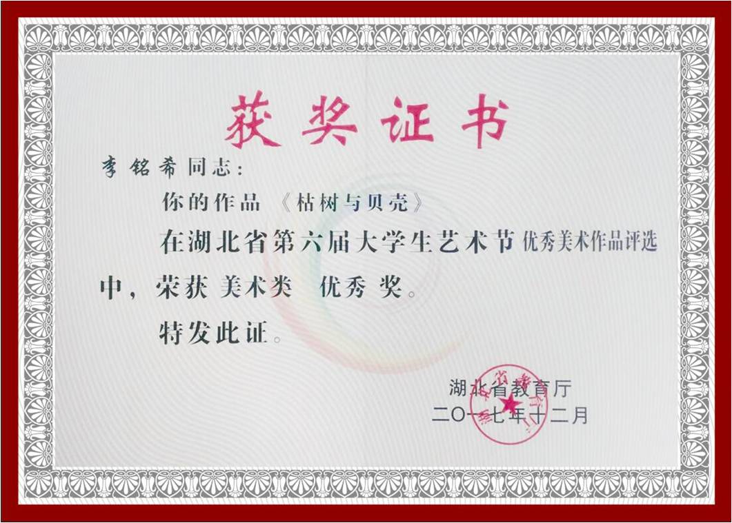 大学生艺术节获奖证书