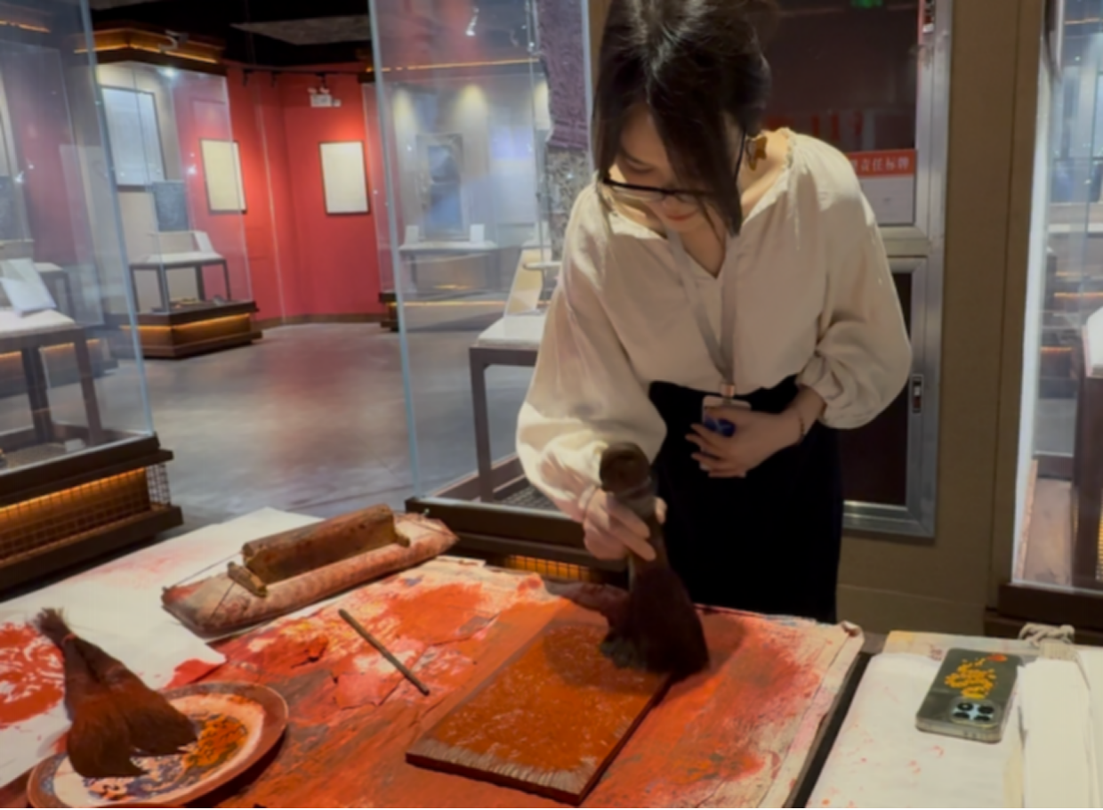 产品教研室老师学习版画拓印技艺