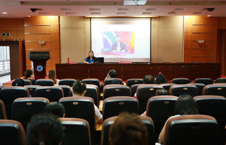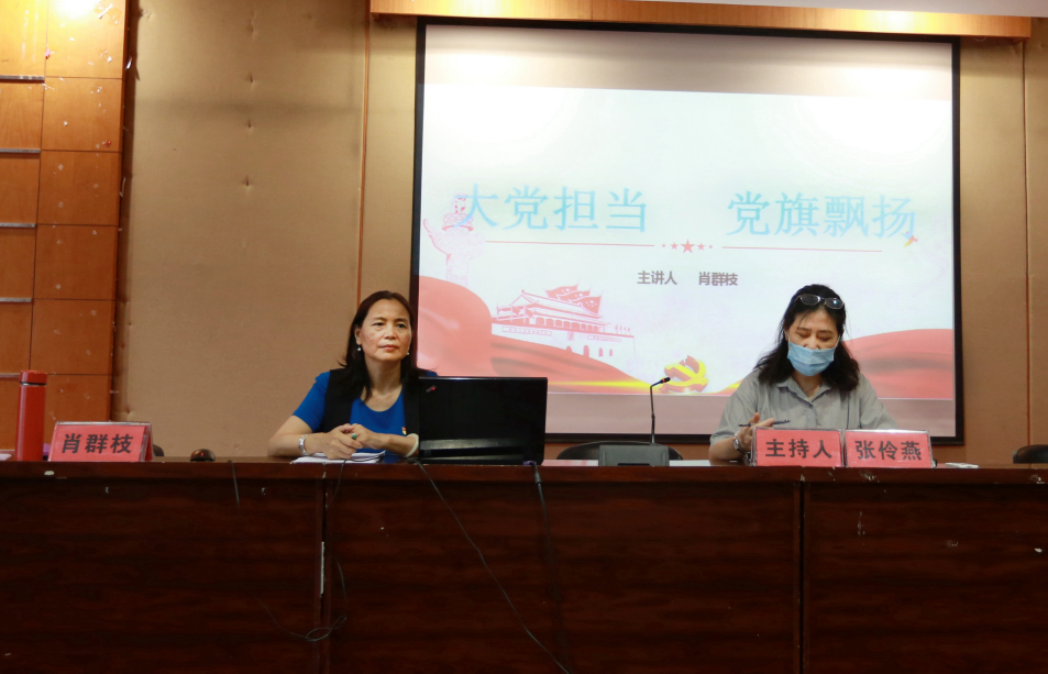 在庆祝建党99周年之际,为深入落实中共湖北省委《关于开展高校基层党组织常态化疫情防控“四个一”行动的工作提示》和学院《关于在全校开展“党课开讲啦”的活动通知》精神,进一步夯实二级学院党组织战斗堡垒作用,提升基层党建队伍政策理论水平,学院纪委书记肖群枝同志以《大党担当 党旗飘扬》为主题,于7月2日上午9:30在三教六楼多功能报告厅为yL23411永利上了一堂生动的党课。yL23411永利党总支书记张伶燕主持党课,院长范汉忠、党总支副书记肖珏、副院长杨婉及全体教职工党员30余人参加了此次学习。