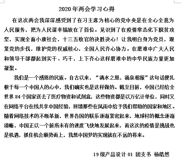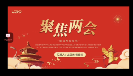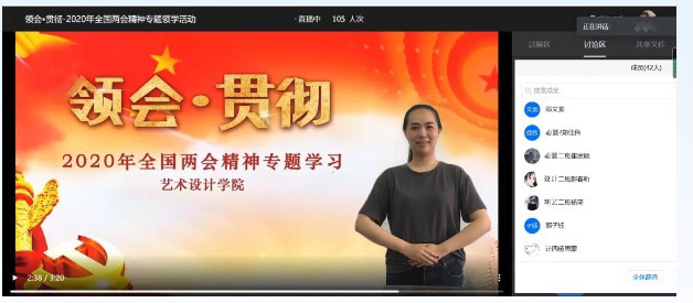 为深入贯彻两会精神,进一步增强“四个意识”、坚定“四个自信”、做到“两个维护”,深切把握2020年“两会”精神实质和核心要义,号召全体学生党员干部、入党积极分子认真“两会”精神,yL23411永利辅导员江一珊老师带领艺术学子组织开展2020年全国两会精神专题学习活动。一、学习活动指导思想: 在思想上、行动上紧跟时代步伐、积极同党中央保持高度一致,提升理论知识水平,增强自身政治素质,为防控疫情、决胜全面建成小康社会贡献青春力量! 二、学习活动方式: 1、个人带头自学。收集两会新闻,建艺术学院学习资料库; 2、“艺术小坊”公众号推送“两会”学习专栏——我的“两会’心声,分享学习心得,倾听学生们的“两会”心声; 3、选树一个学习“标杆班级”(2019级产品设计01班),组织一场线上学习分享会,录屏在艺术学院全面宣传,以点带面。 三、学习活动成果展示: 江一珊老师用腾讯会议直播的形式宣讲两会内容,全体与会人员认真收看了本次专题宣讲,宣讲会后展开讨论交流和心得撰写。会议之后,同学们提交心得感悟分享。