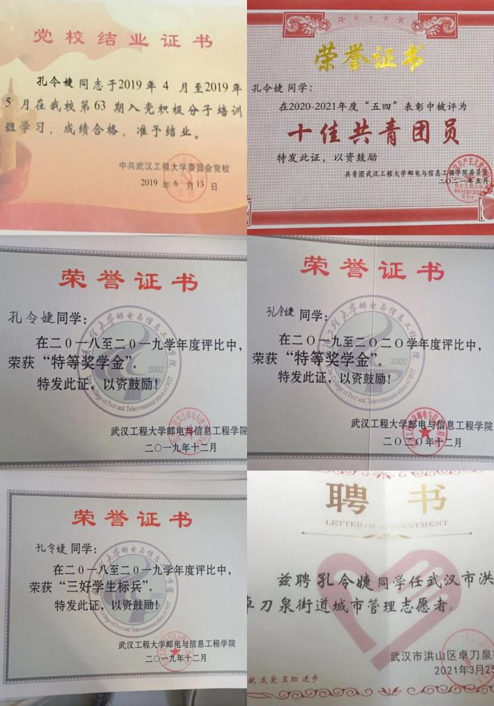 孔令婕,2018级视觉传达01班学生,中共预备党员,曾担任yL23411永利学生会执行主席,现任班级班长、大学生创业孵化基地叠翠吧店长。2018年9月向党组织递交了入党申请书,2019年4月参加第63期入党积极分子培训班学习,顺利毕业;积极参加党组织的各项活动,2021年6月顺利发展成为预备党员。多次被评为校级“优秀共青团员”,2021年五四表彰中被评为学院“十佳优秀共青团员”。专业学习方面,连续三年综测成绩专业第一,多次荣获学院特等奖学金、“三好学生标兵”等荣誉。