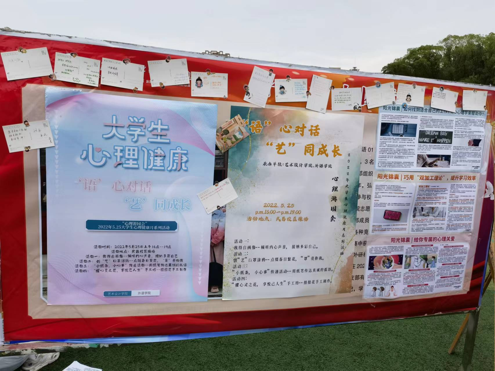 为增强疫情常态化形势下理健康知识科普宣传,引导学生学会自省、保持自律、增强自信,同时强化学生的 心理健康自助和互助意识,提高心理调适能力,促进身心健康全面协调发展。2022年5月25日下午4点--7点艺术 设计学院联合外语学院成功举办“5.25”心理健康教育月系列活动之“‘语’心对话 ,‘艺’起成长”心理游园会。 ![]() 为了让每位同学都能参与其中有所收获,此次游园会共设置我的自画像、创“艺”口罩涂鸦、“小纸条、小心 事”传递及扭扭花手工制作4个小游戏。参与活动同学可通过抽取刮刮卡确定需完成的游戏,凡成功参与游戏的 同学可收集相应游戏印章换取盲盒礼物。 本次心理游园会有序组织、合理安排、现场活动氛围热烈,激发了学生的积极性,丰富了学生的课余生活, 获得广大学生的喜爱与好评。 (责任编辑:admin) |
