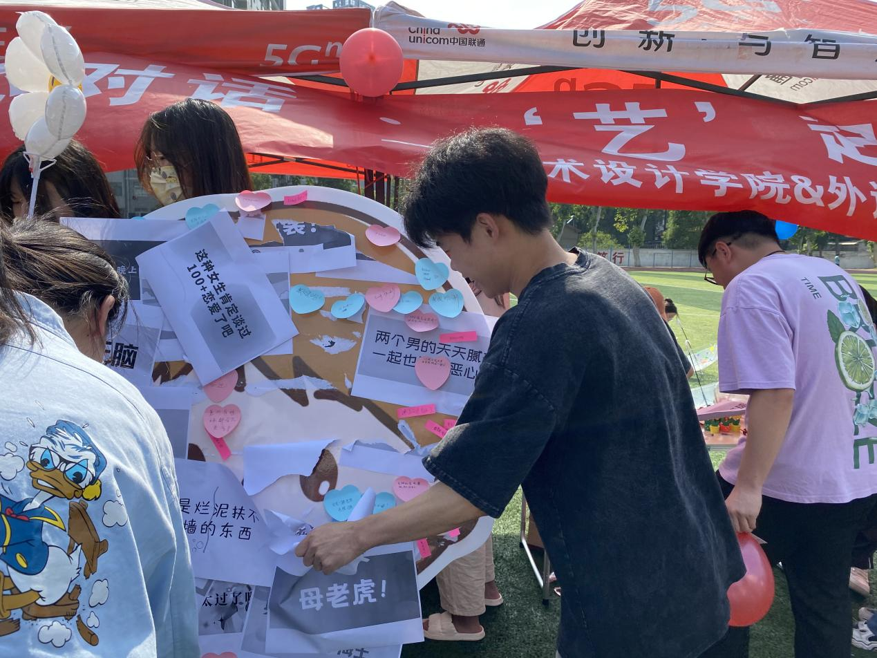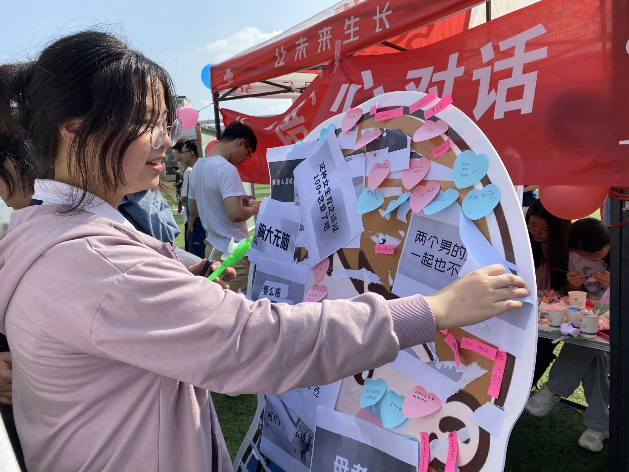 我院在心理游园会上给同学们准备了小纸条和气球,同学们可以在小纸条上写下自己现在正感受着的负面情绪,如无聊、沮丧(嫉妒、委屈、愤怒、害怕、难过等)。 然后对自己说:“我现在来吹气球,每吹一次,就能把坏情绪或烦恼从我的身体中赶出去一些。气球吹大以后,我就把这些烦恼吹到了气球里,然后让气球把烦恼带走。” 以此来对自己进行积极的心理暗示。游戏结束后可以把气球踩爆,集中宣泄自己的负面情绪,缓解焦虑与压力。这个游戏更多的作用是给我们直面自己内心的机会,并通过一个“仪式”让我们合理地宣泄自己的负面情绪。在生活中的任何时候,只要你意识到自己不安,做一下这个小游戏,它都会给你带来新的力量。 ![]() ![]() 四、开展做不被定义的自己——撕标签活动 同学们在心理游园会活动现场的kt板上,撕掉自己讨厌的标签,选择喜欢的标签或者写下属于自己的标签贴上去,如:“你不必成为任何人,坚持做自己就是最帅的,不必迎合他人的期待,性别不是罪魁祸首偏见才是,美没有标准答案。”等等。在此次活动中,同学们鼓起勇气,用力撕掉自己身上消极的标签,做自己的主人,打破刻板印象,拒绝被他人定义,增强了学生自信,展现了青春风采。 ![]() ![]() ![]() ![]() (责任编辑:admin) |