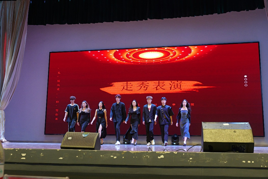 大学生艺术团带来的职场服装走秀,她们自信从容、优雅大方的表演获得了师生们的一致好评。