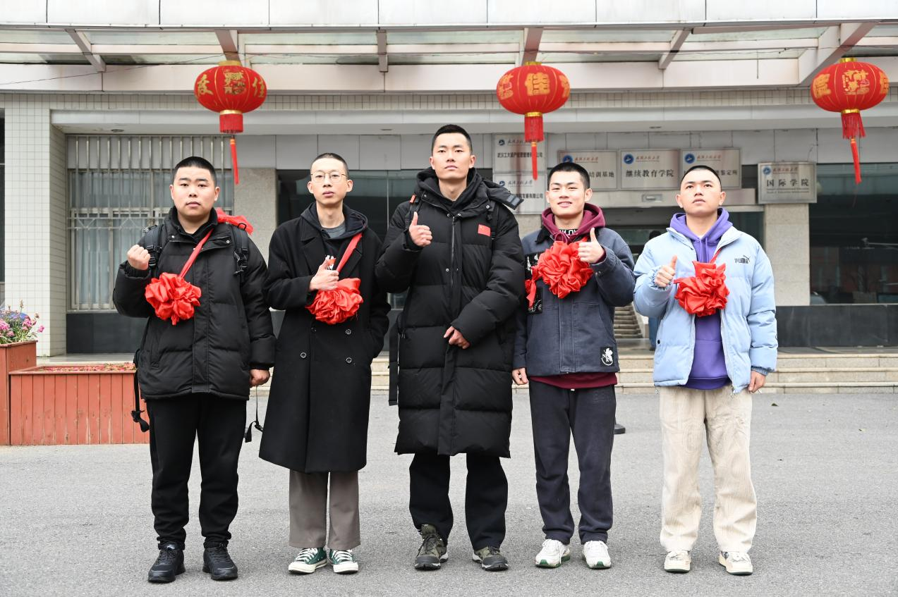 “我们的约定终于实现了!”李祯杰说。兄弟五人在辅导员、班主任张琴敏的介绍下相识,因为共同的兴趣走到一起,会一起夜跑,互相监督,互相鼓励,也会交流未来就业等方面的话题,学院参军光荣的浓厚氛围,促使他们有了应征入伍的共同梦想。2023年12月春季征兵开始,五人不约而同在全国征兵网上完成了网报,第一次体检后,杨永康因肘关节外翻被列入了体检待定名单,“兄弟五个人报名,仅我一个结果是待定,约好的一起入伍,我可不能掉了队”,正是这份执着与信念,杨永康在兄弟们的鼓舞下,在寒假期间经过艰苦的调整训练,经过复检,终于得到了振奋人心的消息,复检通过了!随后的政审、二次复检五人一路顺畅,都被列入了此次应征入伍名单。在此过程中,辅导员、班主任张琴敏老师对毕业生应征入伍的政策和流程,逐一提供解答,并根据五人的实际情况给予出最恰当的建议。