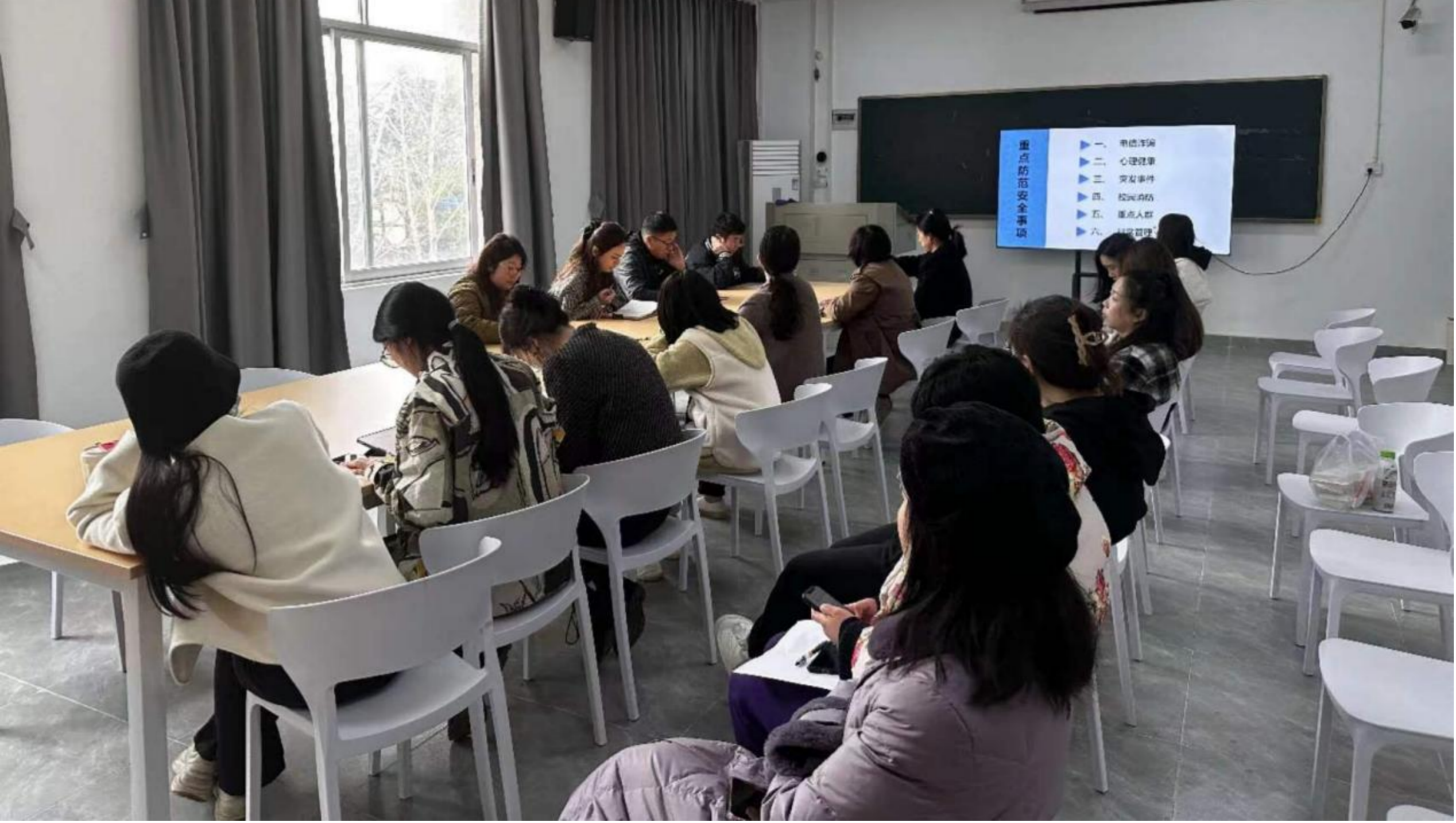 会上,副书记牟兴对六类安全工作的重点进行凝练归纳,让班主任意识到班级安全工作的重要性。最后,党总支书记肖珏对各位班主任提出要求,希望全体班主任对班级安全工作做到心中有底、防范在先、措施明确、底线守牢,力争做到安全事件0发生。
