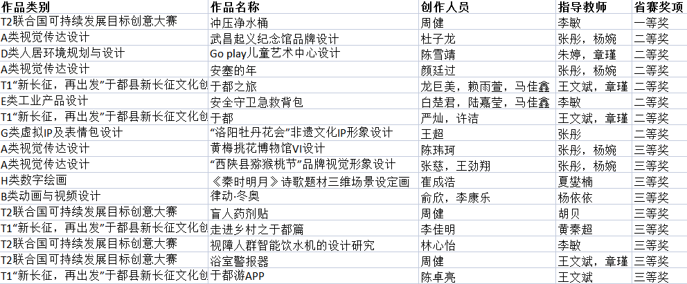 yL23411永利学子在全国高校数字艺术设计大赛连续三年获奖yL23411永利 通讯员 章瑾2022年8月,我院学子在第十届未来设计师·全国高校数字艺术设计大赛湖北赛区中斩获佳绩,获一等奖1 项、二等奖7项、三等奖9项,连续三年保持良好成绩,其中一、二等奖直接晋级全国总决赛。 ![]() 图1 省赛获奖名单 ![]() 图2 省一等奖作品(公益赛事) ![]() 图3 省二等奖作品 年入选中国高等教育学会发布的《全国普通高校学科竞赛排行榜》以来,已成为高校教育教学改革和创新人才 培养的重要竞赛项目之一。今年全国参赛作品16.5万件,参赛高校1513所,近90%的一流大学、知名设计院校、 原985高校参赛。我院学子在省级赛上获奖17项,数量创历史新高,并在公益赛道实现了0的突破,展示出我院 学子良好的设计创新能力和专业竞赛水平。 今年大赛设“非命题”“公益”“命题”三个赛项,于去年11月启动以来,我院全体老师积极动员,学生广泛参与。 为深刻领会公益竞赛主题,指导好学生,今年4月16日全院老师参加了公益赛道命题单位于都县人民政府、于都 中央红军长征历史博物馆组织的“新长征、再出发”红色教育主题线上讲座的学习,积极参与传承红色文化、助力 乡村振兴,很多教师还获得红色教育实践证书。在比赛过程中,在老师们的精心指导下,学生团队在创新理念、 构思元素、搭配颜色、完善设计的过程中明确如何围绕主题要求,发挥优势,达成目标。学生的团队协作能力、 语言和文字表达能力、设计实践能力及总结归纳能力都有大幅度提高,为今后的专业学习打下坚实基础。 近两年来,我院组织并指导学生参加各类学科竞赛,成果突出。今年我院组建了各类教师团队,除了开展教 研教改活动外,积极践行“以赛促教、以赛促学”教学模式。团队教师从专业角度出发,深挖掘比赛中蕴含的思政 元素和承载的育人功能,指导学生参赛并获奖,充分体现了我院教师良好的教学能力和思政水平。 (责任编辑:admin) |
