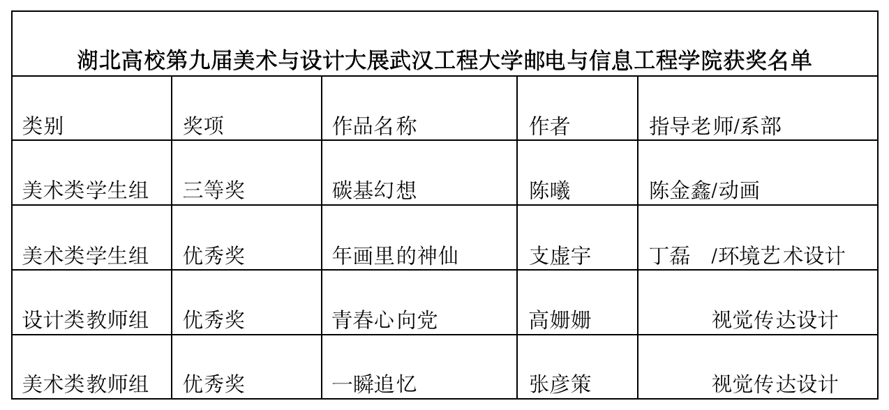 湖北高校美术与设计大展由湖北省教育厅,湖北省文化和旅游厅主办,面向全省高等院校教师和学生。每2-3年举办一届,至今已有20年历史,是湖北省高等院校美术设计领域的重要展览赛事。每届参赛院校包含湖北美术学院,华中科技大学,湖北大学,湖北工业大学等优秀高校。本届大展共收到75所高校报送的美术、设计、摄影作品合计共6800余件,我院师生共获奖4项,展示出扎实的美术与设计能力和专业竞赛水平。
