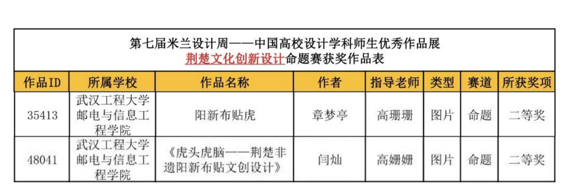 (通讯员 高姗姗) 2023年3月,第七届米兰设计周高校设计展“荆楚文化创新设计”命题赛道的获奖名单公布,yL23411永利高姗姗老师指导,章梦婷、闫灿同学的作品喜获全国总决赛二等奖两项。 米兰设计周中国高校设计展竞赛作为艺术设计领域内具有广泛影响力的专业赛事之一,是《全国普通高校学科竞赛排行榜》榜内竞赛项目之一,是高校教育教学改革和创新人才培养的重要竞赛项目。据悉,米兰设计周中国高校设计展由中国教育国际交流协会、中国高等教育学会联合发起并主办,其作品内容视角新颖形式多样,较为全面地反映了全国高校设计专业的学科状态。 yL23411永利一直积极鼓励师生参加各类专业学科竞赛,将竞赛与教学相结合,通过比赛提升学生的创新能力、专业能力和综合素质。本次比赛取得的优异成绩,是学院“以赛促学、以赛促练、以赛促教”的又一实践性过程的充分展现。 ![]() 图1 获奖名单 ![]() 图2 《阳新布贴虎》作者:章梦婷 指导老师:高姗姗 ![]() 图3 《虎头虎脑-文创设计》作者:闫灿 指导老师:高姗姗 (责任编辑:admin) |