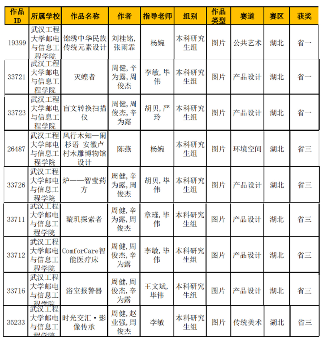 (通讯员:胡贝)2023年8月29日,第九届东方设计奖·全国高校创新设计大赛将国赛获奖名单、省赛获奖名单结果公布,此次我院在比赛中获得佳绩,共获奖10项。其中全国一等奖1项,省级一等奖3项,省级三等奖6项。