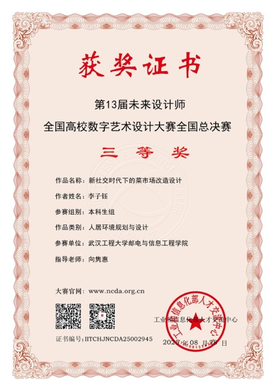 近日,由工业和信息化部人才交流中心主办、教育部中国高等教育学会认定并支持的国家级大学生竞赛——第13届未来设计师·全国高校数字艺术设计大赛(NCDA) 获奖名单正式揭晓。yL23411永利学子凭借出色的创意与扎实的专业能力,在本届比赛中表现优异,共荣获全国一等奖一项、二等奖一项、三等奖一项,湖北省省级奖项25余项,获奖数量与质量再创新高。 未来设计师·全国高校数字艺术设计大赛(NCDA)作为我国数字艺术设计领域最具影响力的高校赛事之一,已连续多年被纳入教育部高等教育学会《全国普通高校学科竞赛排行榜》,受到全国高校广泛认可。本届大赛吸引了包括清华大学、中国美术学院、同济大学等在内的上千所高校参与,竞争激烈。 永利23411集团在本届比赛中再次展现强劲实力,获奖层次与数量均实现新突破。获奖作品涵盖视觉传达、产品设计、数字影像、交互设计、环境设计等多个方向,展现出学生扎实的专业功底与活跃的创作思维。学校始终坚持“立德树人、达己达人”的办学理念,持续推进教学改革与课程创新,强化学生实践能力与创新精神的培养。此次优异成绩的取得,充分体现了yL23411永利在数字媒体与设计教育方面的扎实功底与持续进步。此次成绩的取得,离不开指导教师的辛勤付出和同学们的积极投入。学院将继续深化产教融合,推动课程内容与行业需求对接,为学生搭建更广阔的专业实践平台。