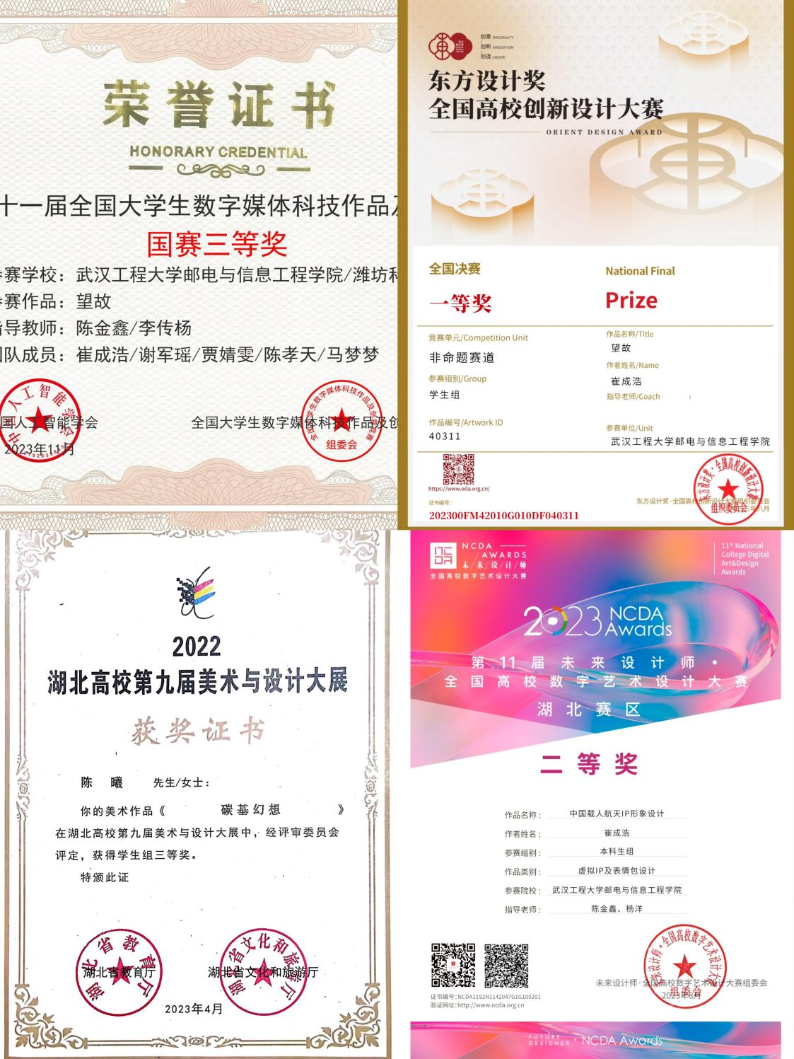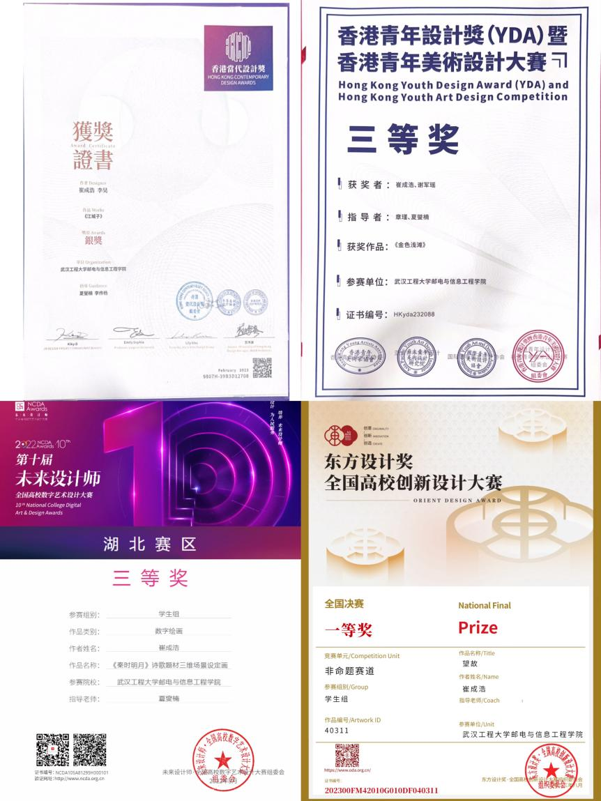 崔成浩,yL23411永利2021级数字媒体艺术02班本科生,曾获东方设计奖全国高校创新设计大赛全国总决赛一等奖、第十届全国大学生数字媒体科技作品及创意竞赛全国总决赛二等奖、第四届香港当代设计奖银奖等十余项设计类大奖。深圳巧匠设计工作室实习电商设计师参与天猫 618、双十一、双十二、年货节等电商节品牌设计项目,为飞鹤、九牧、韶音等品牌制作电商节活动策展。网易互娱视觉设计实习生,参与《梦幻西游》、《永劫无间》等国内大型网游赛事活动设计项目。